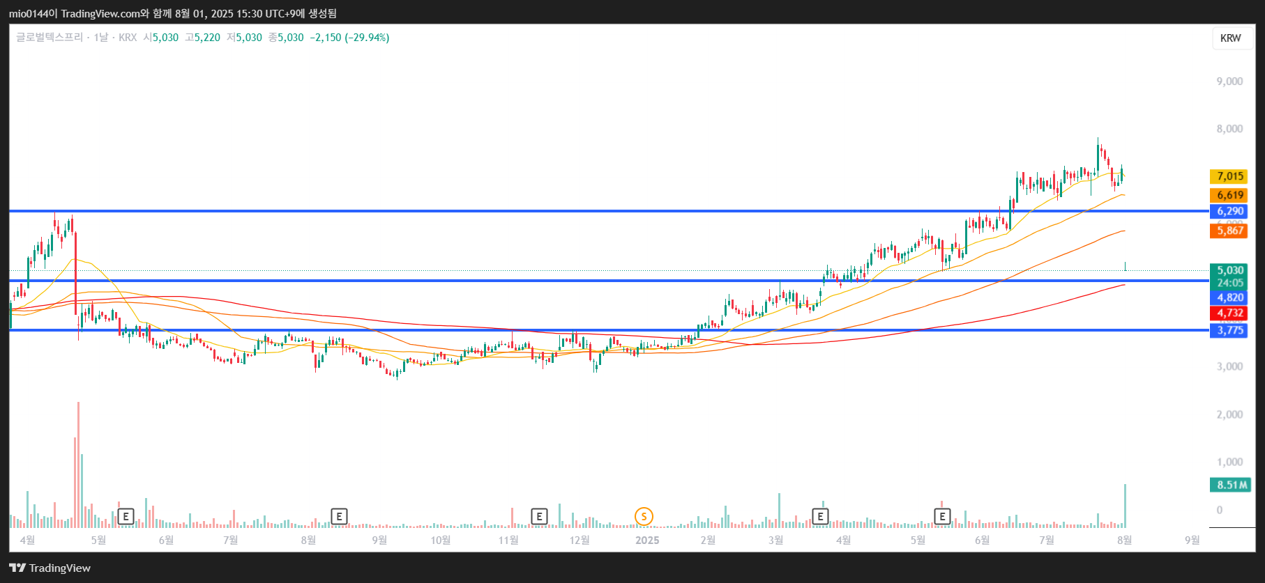 2025년 7월 31일, 글로벌텍스프리(204620)는 당일 하한가로 장을 마무리하며 투자자들의 이목을 끌었습니다.