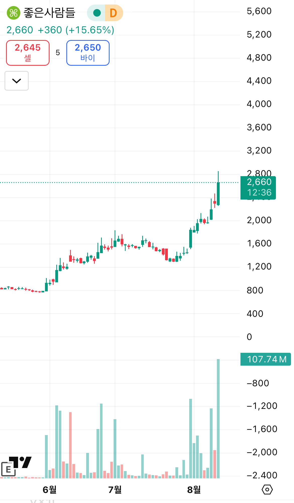 2025년 8월 12일, **좋은사람들(033340)**은 장중 +20% 상승하며 현재 2,660원에 거래되고 있습니다.