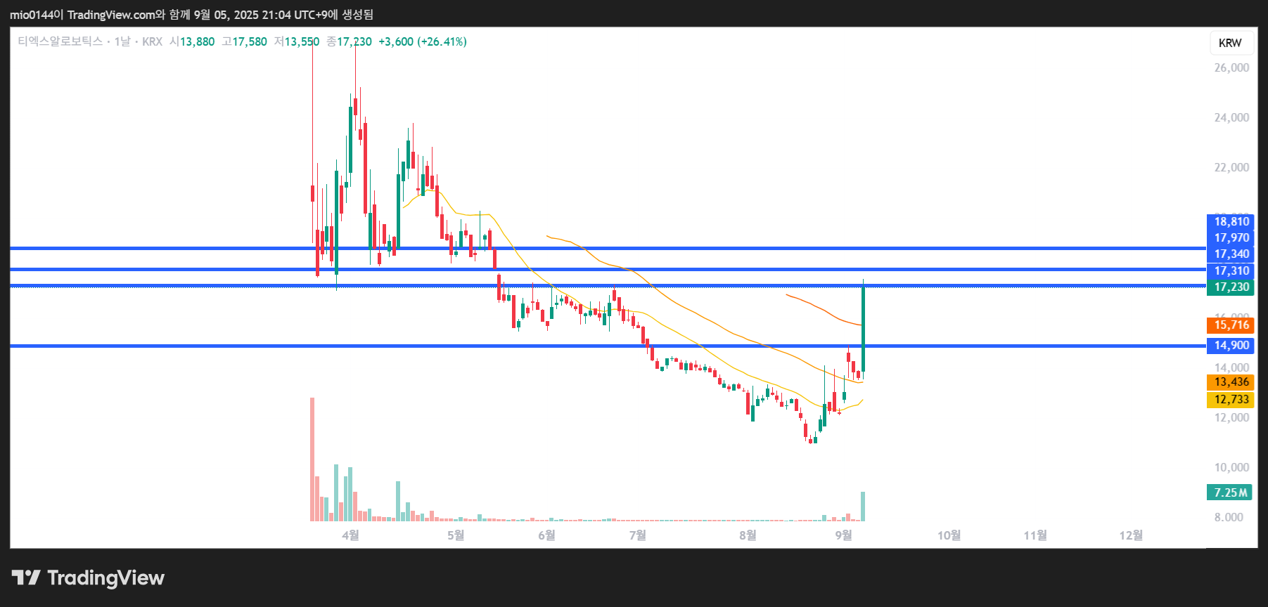 📈 오늘 티엑스알로보틱스 주가 흐름 요약