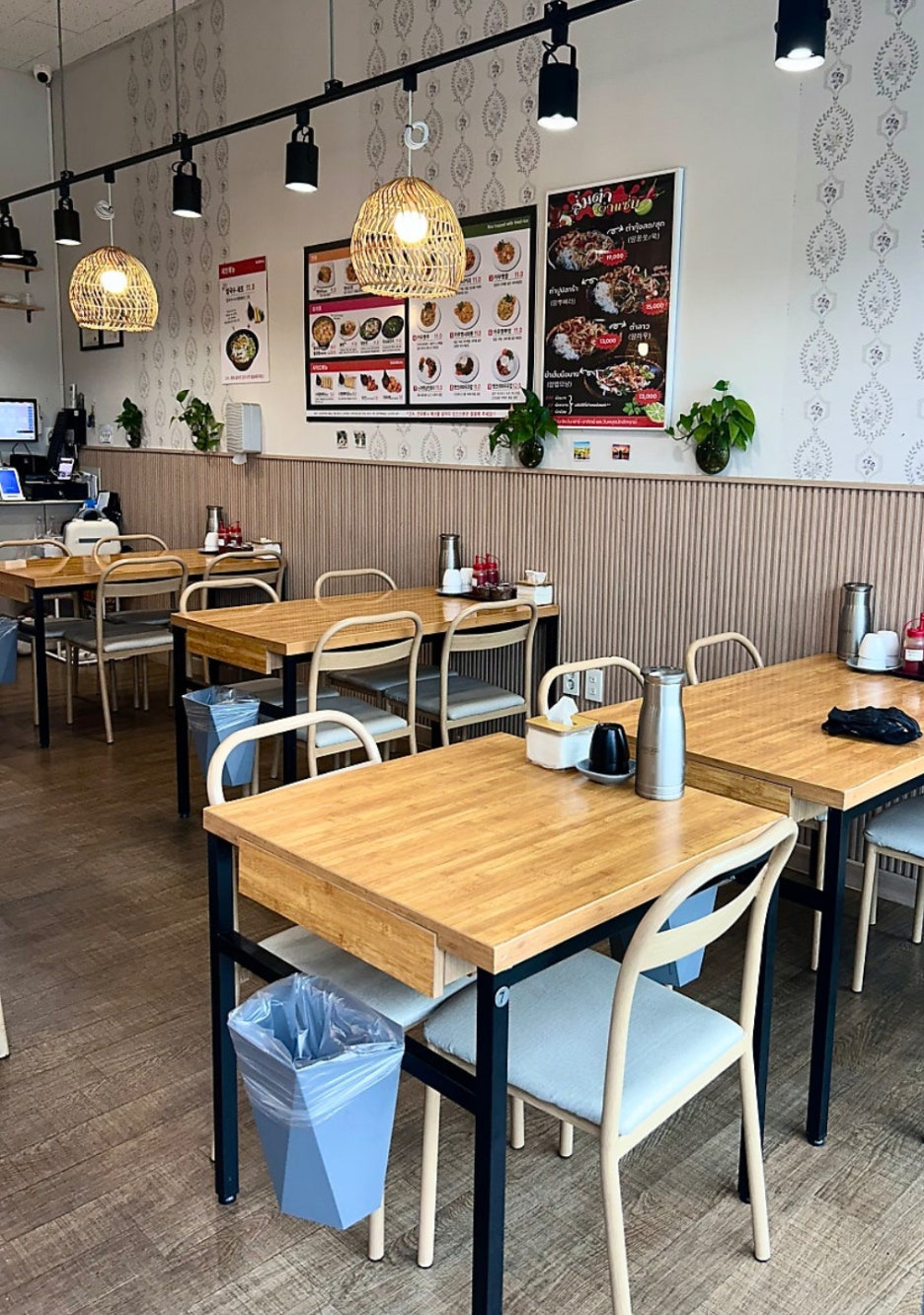 매장 내부는 전체적으로 우드 톤 테이블과 의자,
