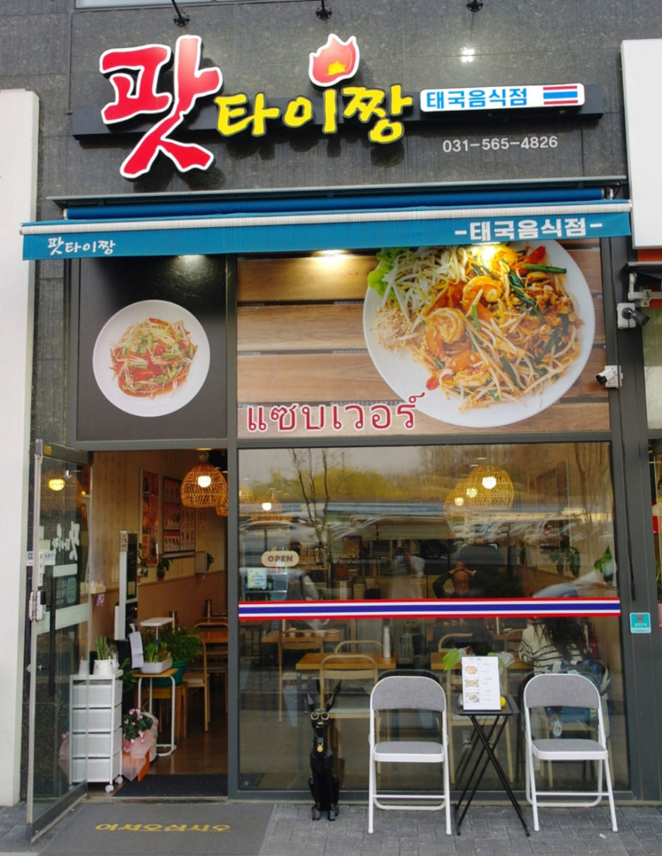 ‘팟타이짱’이라는 빨간색 간판이 눈에 띄며