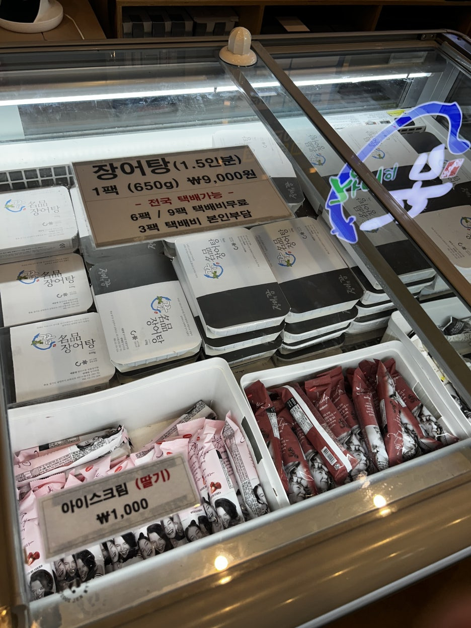 1층에서 판매하는 장어탕, 아이스크림, 장어액 등을